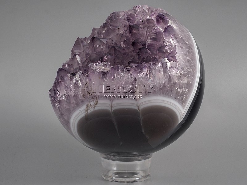 Koule s ametystovými krystaly, vyrobeno z části ametystové geody.